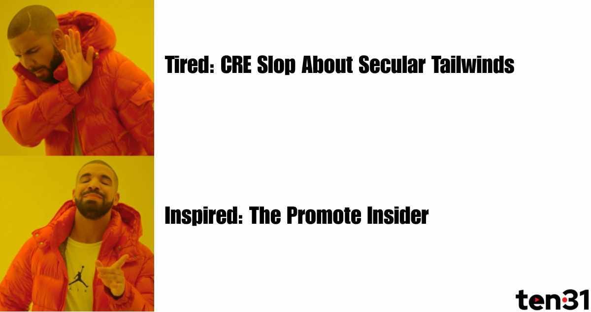 If you’re interested in The Promote for the resi mortgage world, James is killin’ it over at The Mortgage Scoop (Disclosure: ten31 is co-publisher)